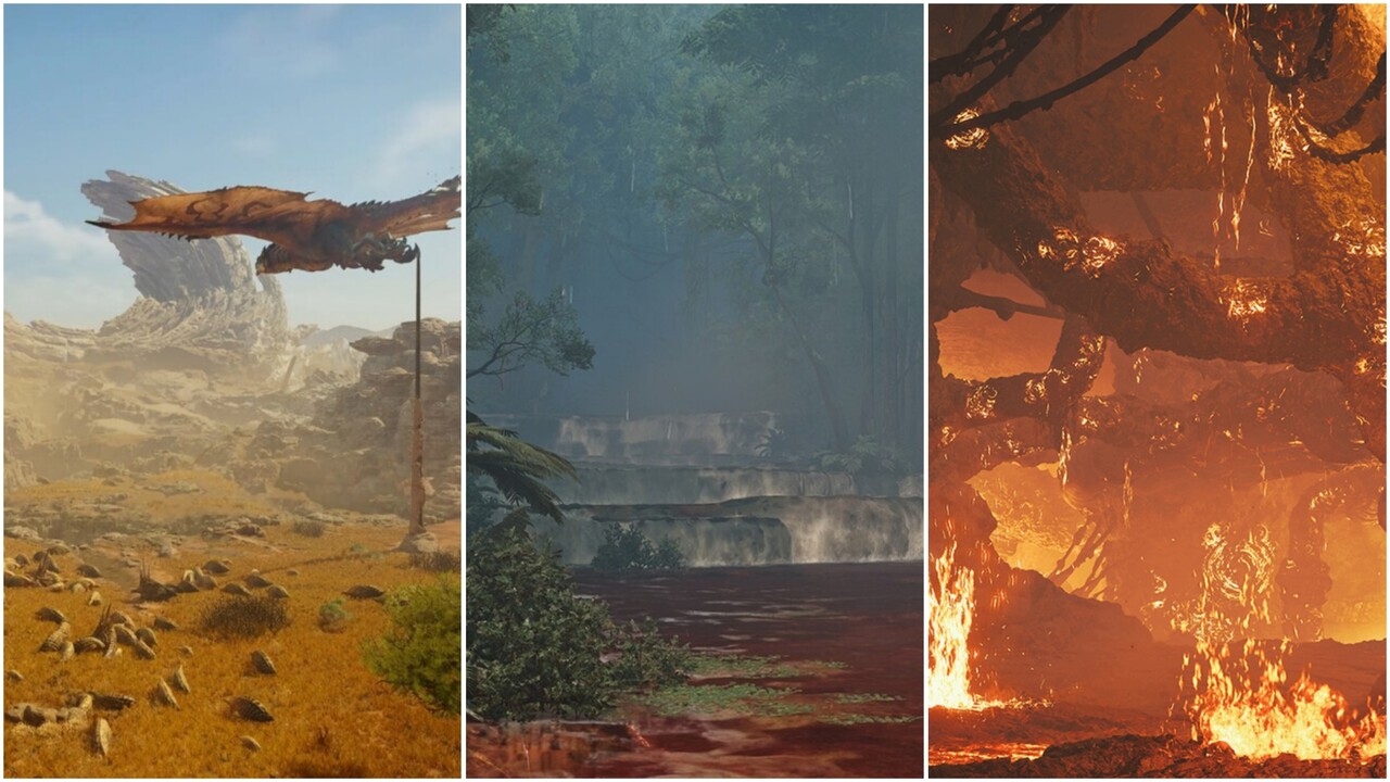 レ・ダウなどの肉食性モンスターは、小型モンスターを狩り、捕食します。口元に引きちぎった肉がチラッと見えたりはするのですが、ただイマイチ「肉を食べている感」が薄いと感じました。