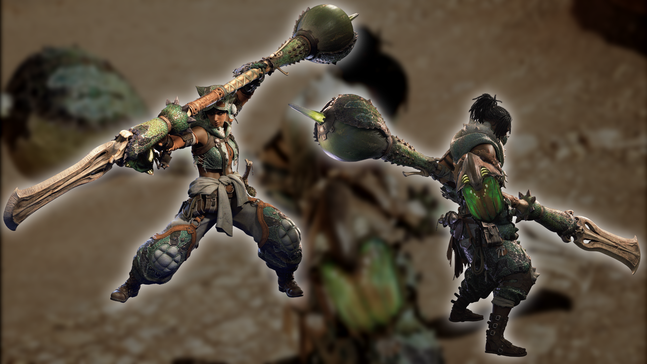 チャタカブラ装備のハンターとともに細かい部分に変更が加わった操虫棍。集中モードのとき従来の持ち方から上に担ぎ上げた持ち方に変わるようです。