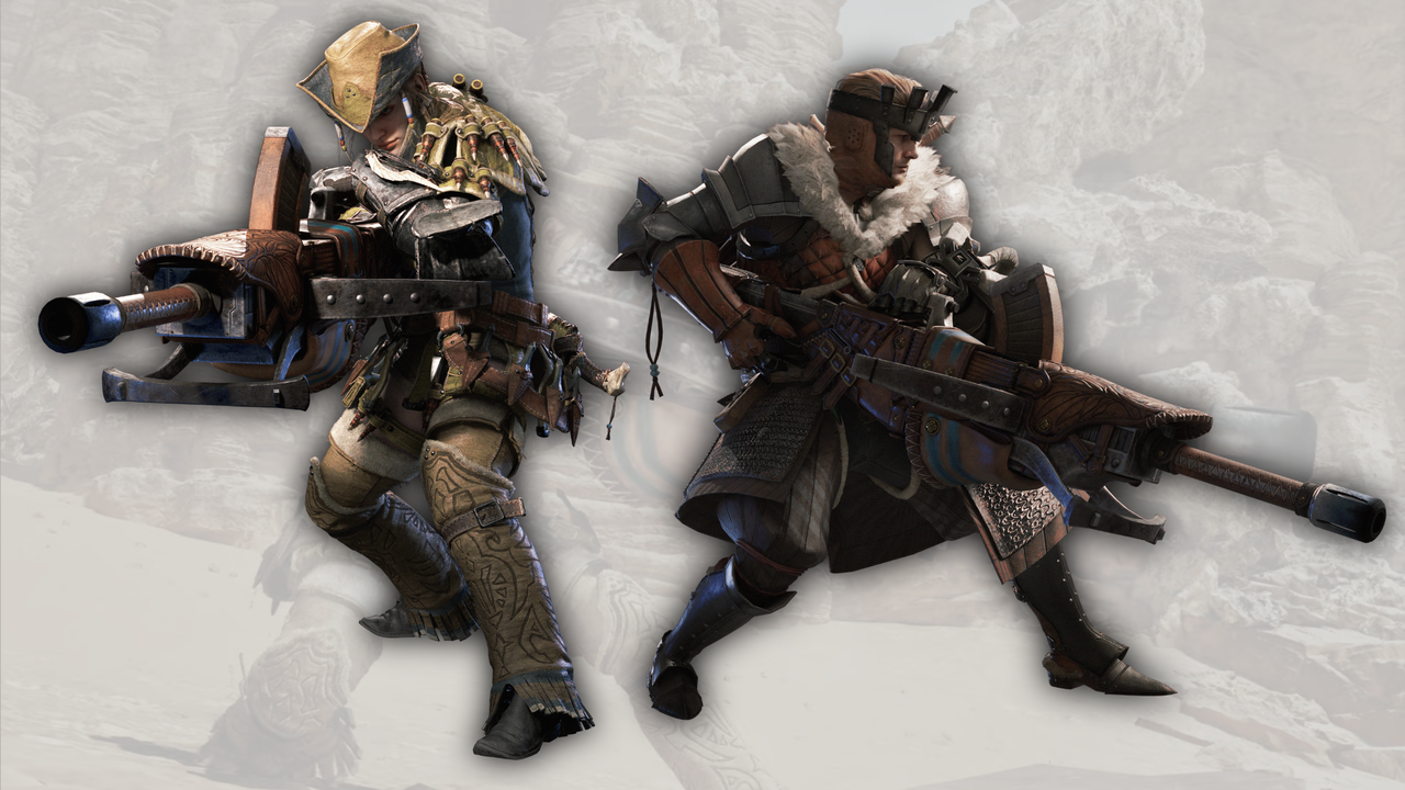 バトルシリーズという様々な小型モンスターの素材を用いて作られた装備のライトボウガンハンター。集中モード時は、少しかがんで狙い定めるような構えに。