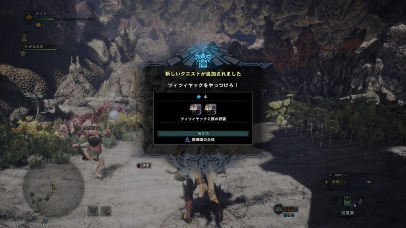 知的な生物学者から「!」が出ていない場合既にクエストが出ている可能性がある。よく探してみよう。