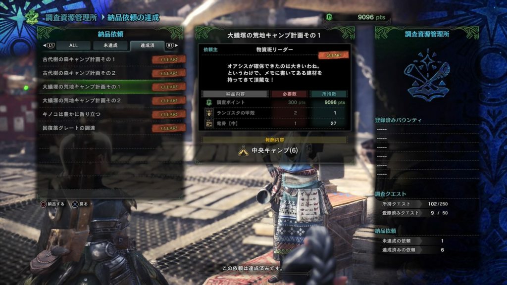 手に入るクエストはプレイヤーごとにランダム。この点は調査クエストに受け継がれている。